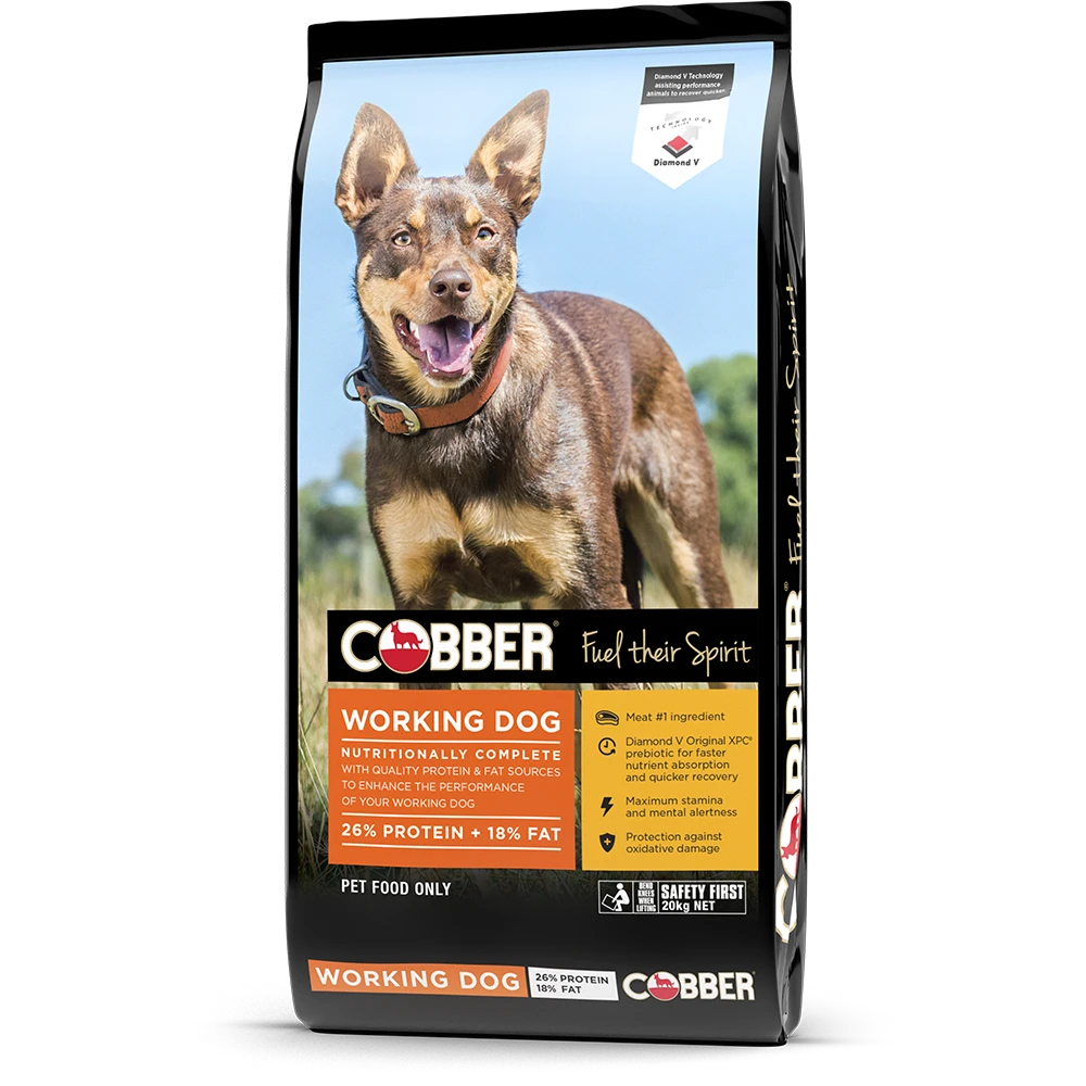 Nothing feels more satisfying than putting in a hard day’s work – all working dogs know that better than anyone. They get up and work day in, day out, pushing themselves and never giving up until the job is done. Hard work like this requires the right fuel. New and improved Cobber Working Dog, with more protein and fat and the same unique balance of Diamond V XPC® prebiotic, vitamins and minerals gives them everything they need to stay in top condition – no matter what is thrown at them.