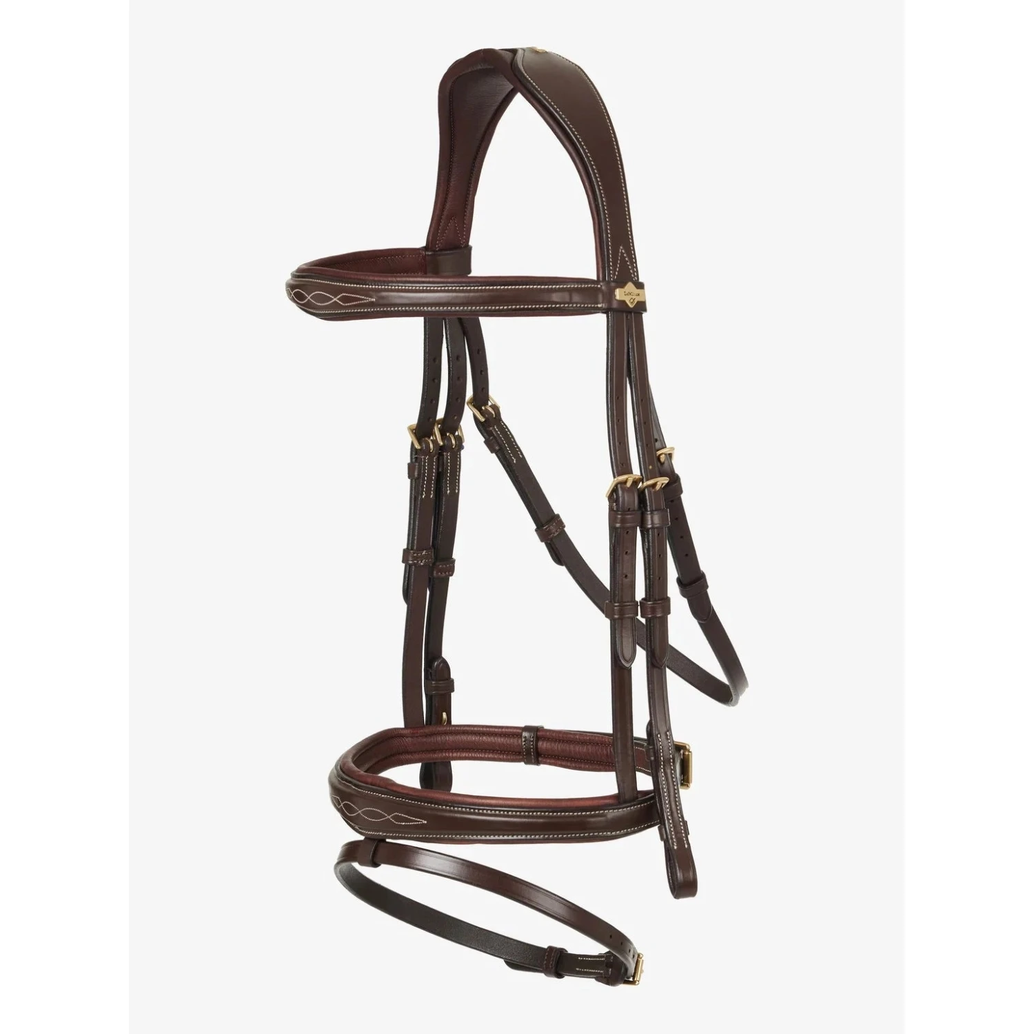 The LeMieux Competition Bridle is show quality with an elegant shaped, padded browband and noseband with decorative stitching.