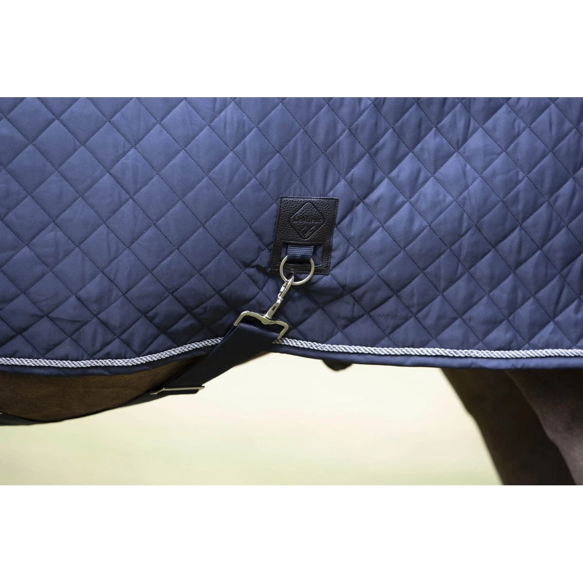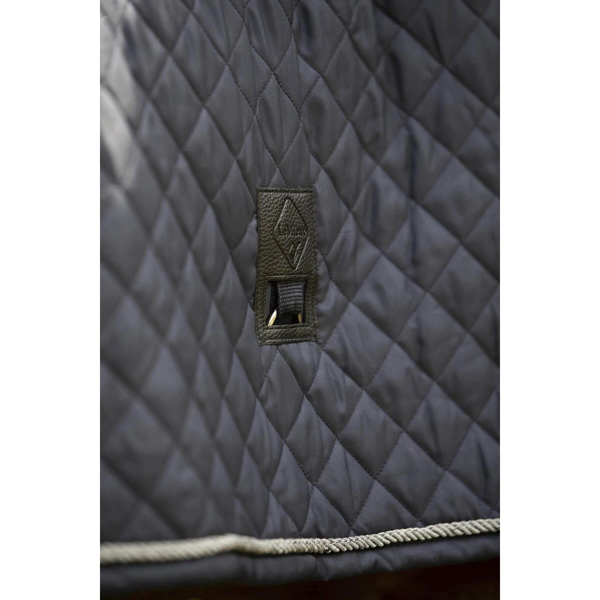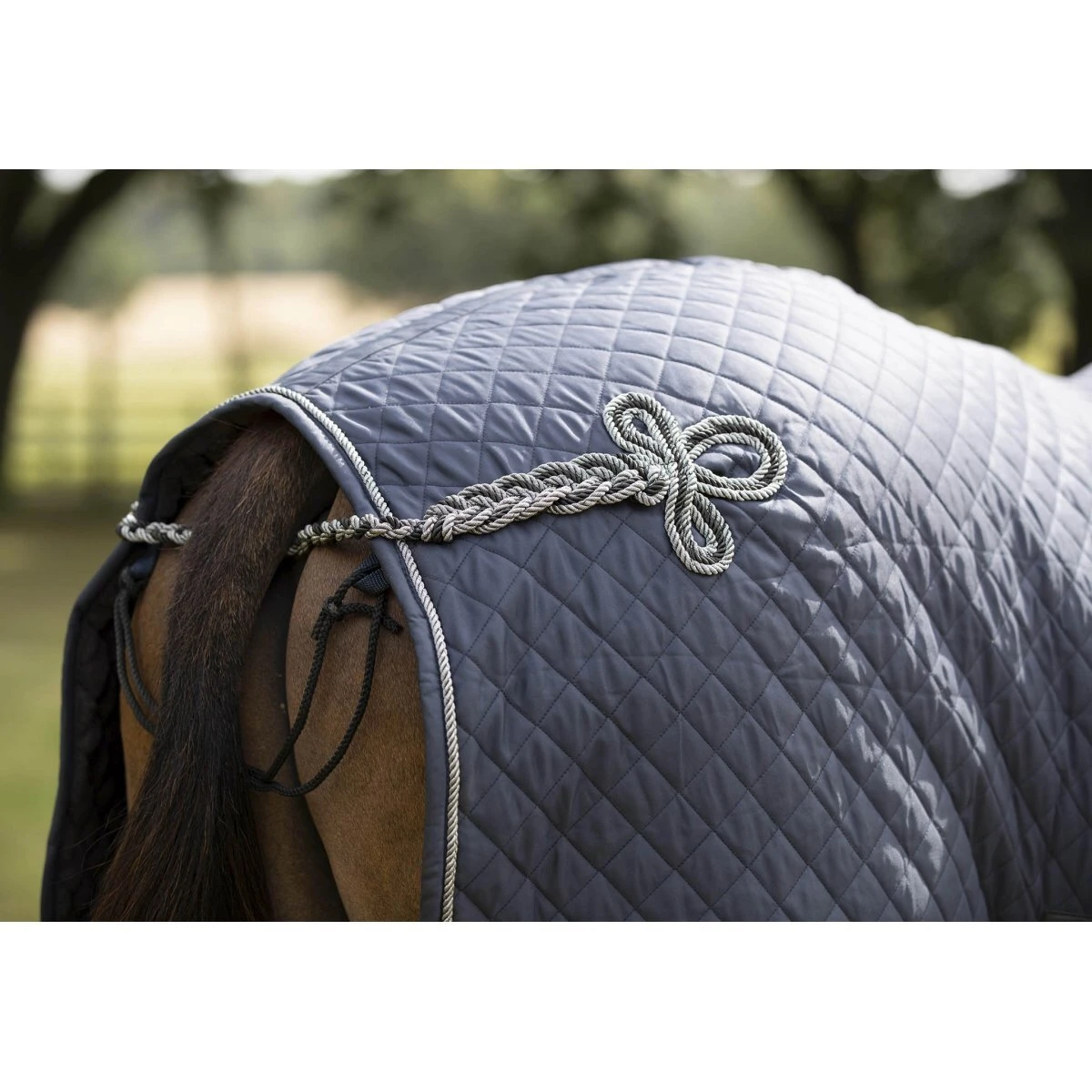 Smart show rug that has it all. Beautiful quilting is off-set by a luxurious fleece collar. Twin belly straps can be secured inside or outside of the rug and are detachable at both ends makes it ideal for throw-over at shows or travel