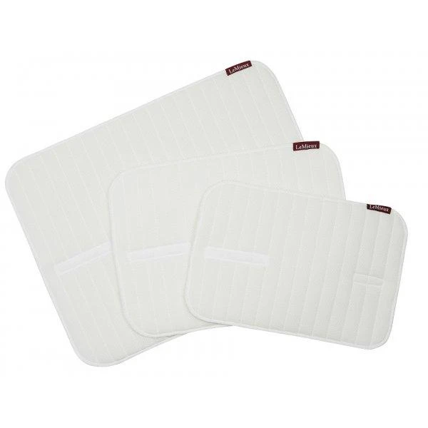 Featuring soft towelling lining these pads are designed to wick away sweat & heat and to dry wet legs. The memory foam filling moulds to the horses leg providing great support and being fully breathable makes them ideal under any stable or work bandage. Easily held inlace by a velcro tab to aid bandaging. Sold in pairs.
