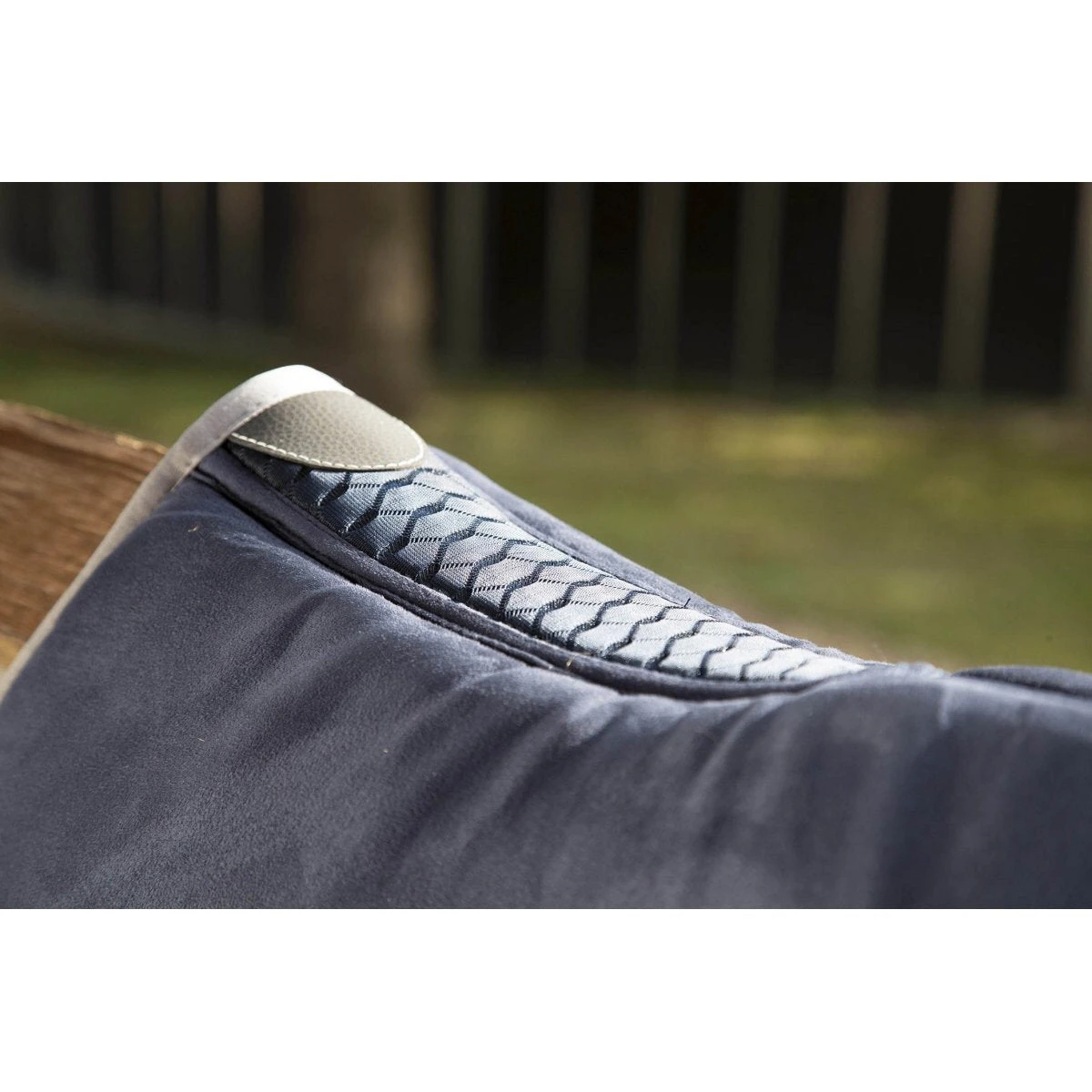 The carbon mesh spine insert ensures optimum wither relief and air flow as the pad’s high wither shape reduces pressure. Contrasting binding, metal motif and pu leather detail make this a very stylish half pad. Suitable for use with a variety of saddle models
