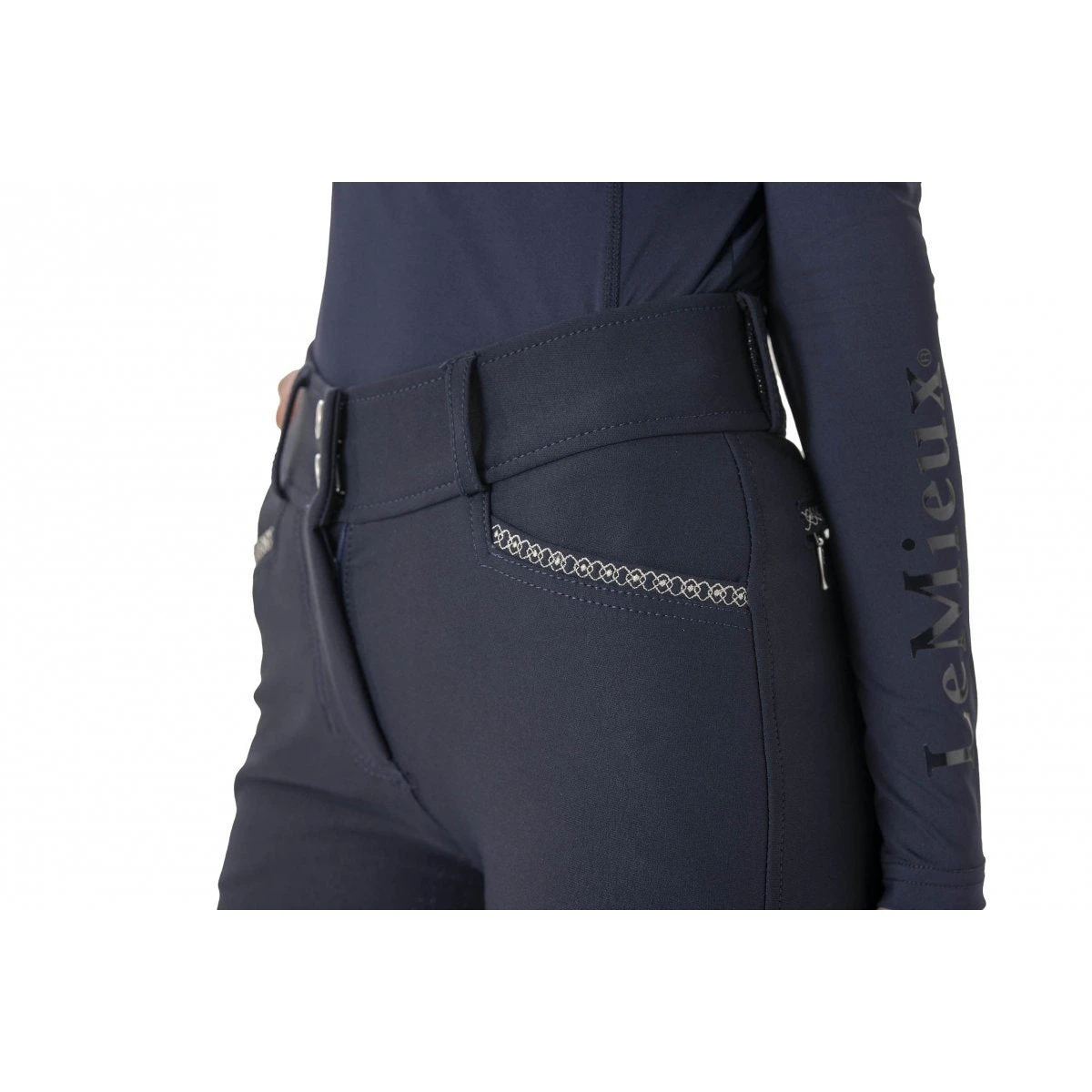 Full silicone seat adds security in the saddle. Embroided detail on the pockets add a touch of elegance to a classic look