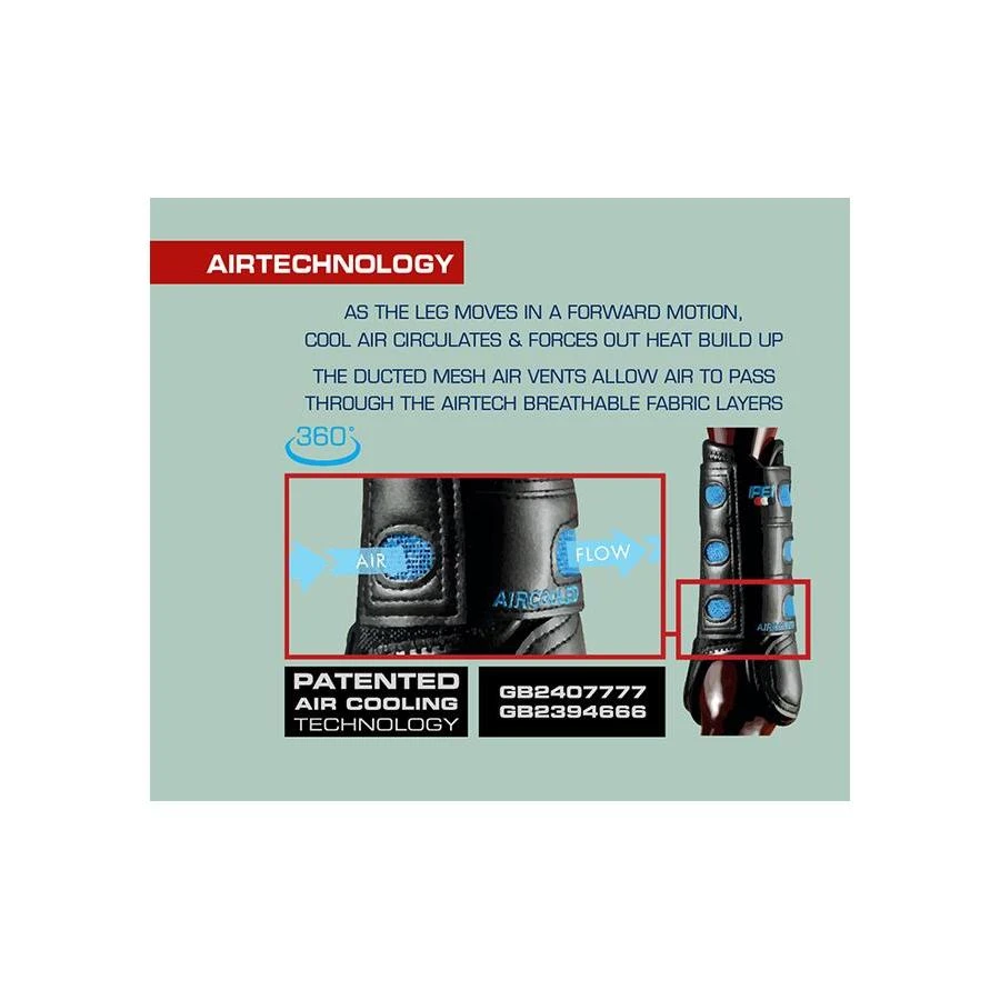 Shaped to mould around the fetlock without impeding the natural action of a horse galloping or jumping. A strike guard runs down the back of the boot protecting the important tendons and ligaments from knocks and over reach injuries. 6 air vents allow a constant stream of air to pass through the boots whilst the horse is in action.