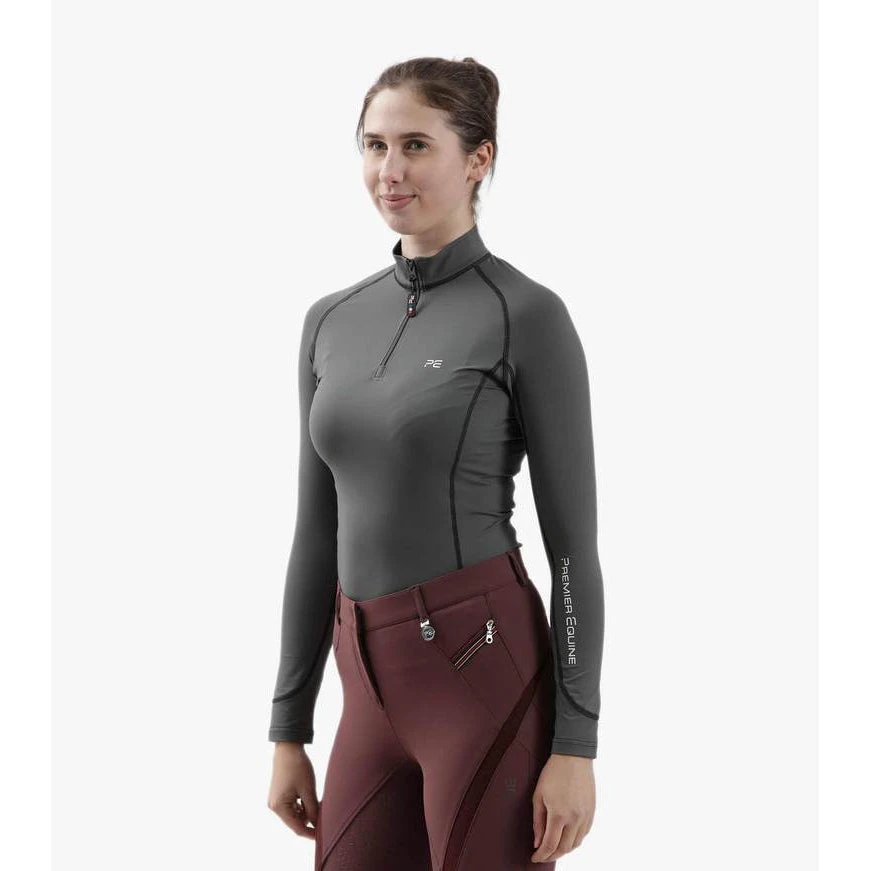 Train in comfort with this four-way stretch performance top. The Oletta is a truly classic base layer for active riders, designed to keep you both cool and comfortable on hot summer days. With sweat-wicking thermal fabric it offers an exceptional level of moisture management during intense training whatever the weather. A quarter-zip and various silicone print elements provide the ultimate in equestrian style.