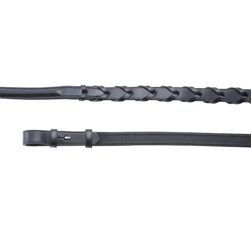 Each rein has a round raised design on the exterior surface, covering the first third of the rein from the bit. This provides a sleek and professional silhouette, ideal for everyday or competition use. Finished with quality stainless steel billet fastenings for easy attachment to your horses bit at either side.