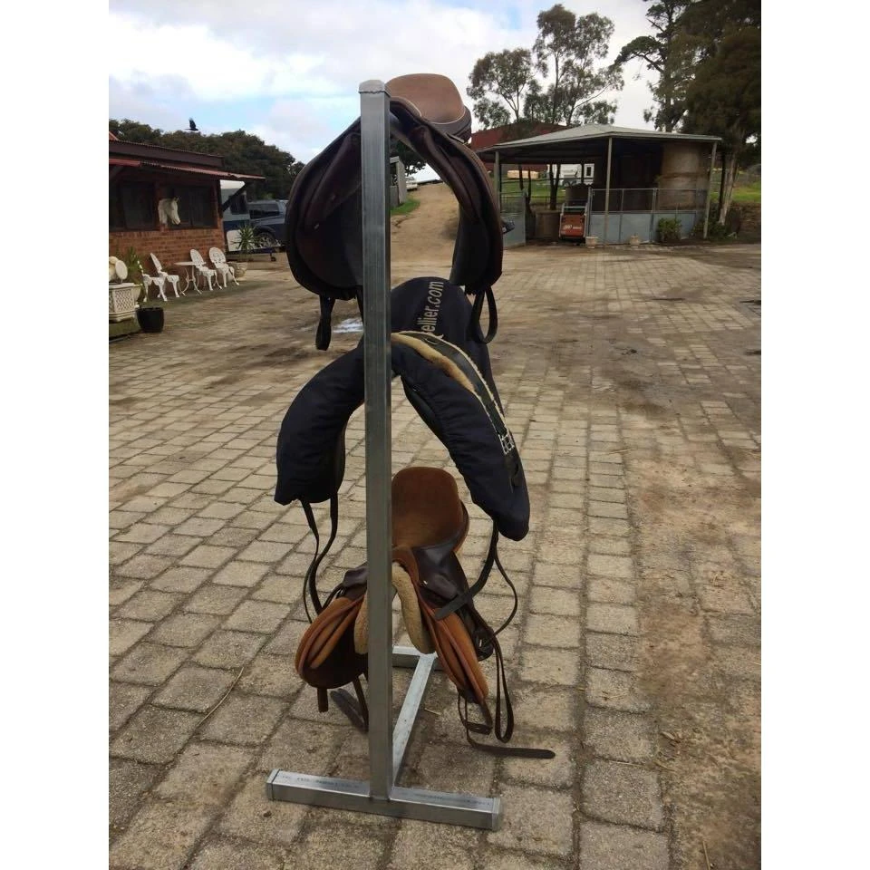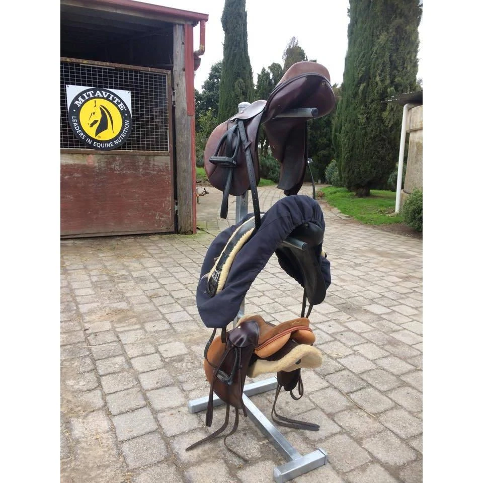 Saddle stand to store 3 saddles comfortably, made of galvanised steel so they will never rust out. Lightweight and easy to manoeuvre.